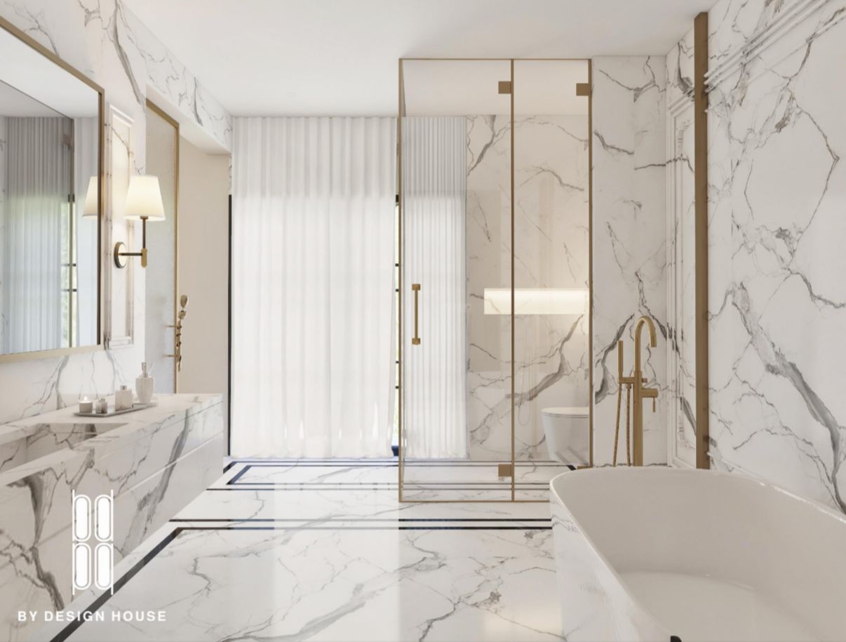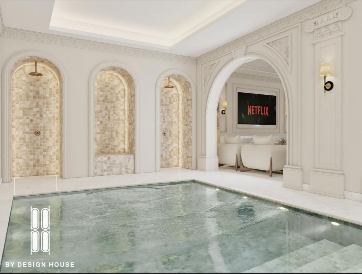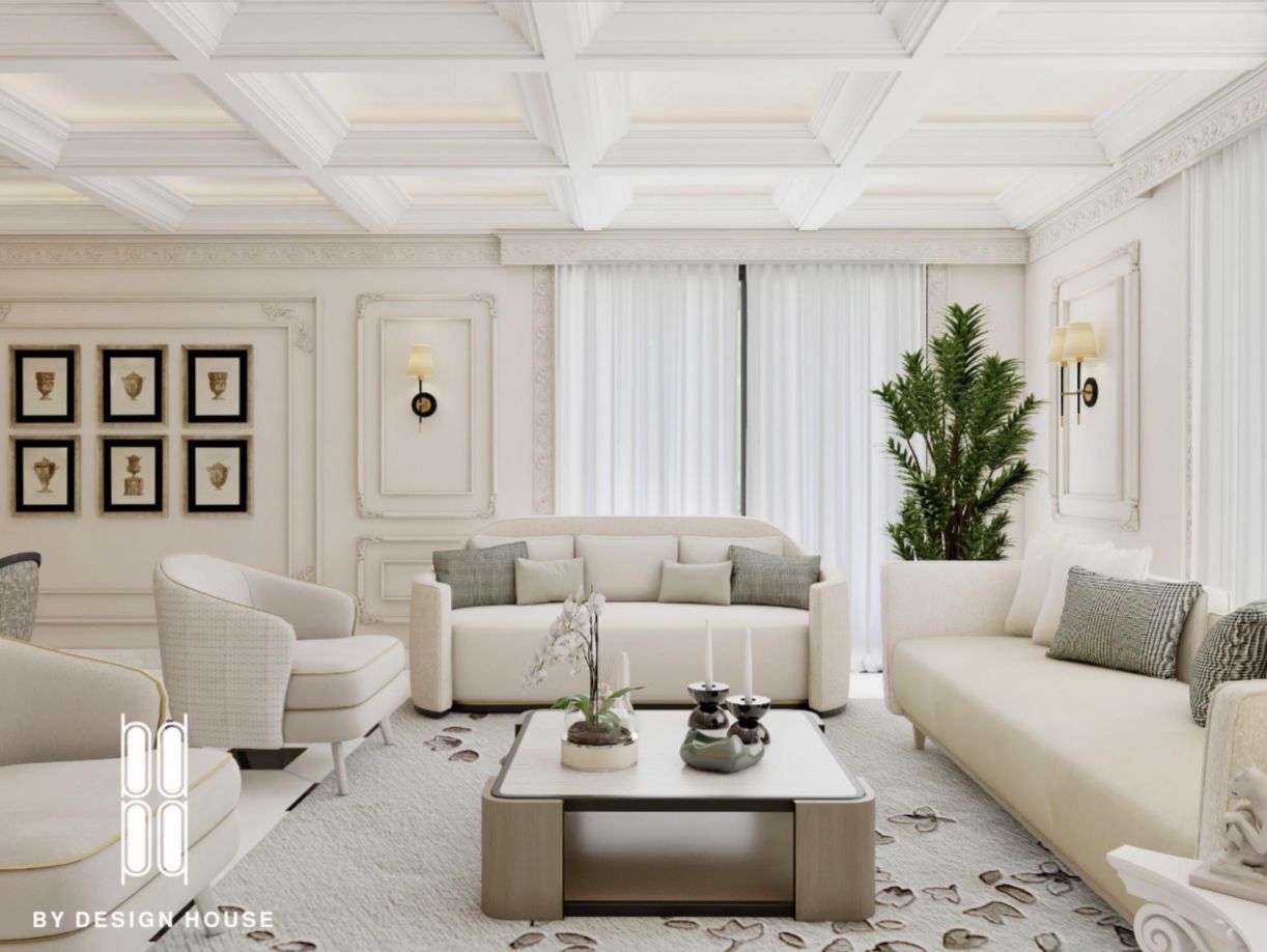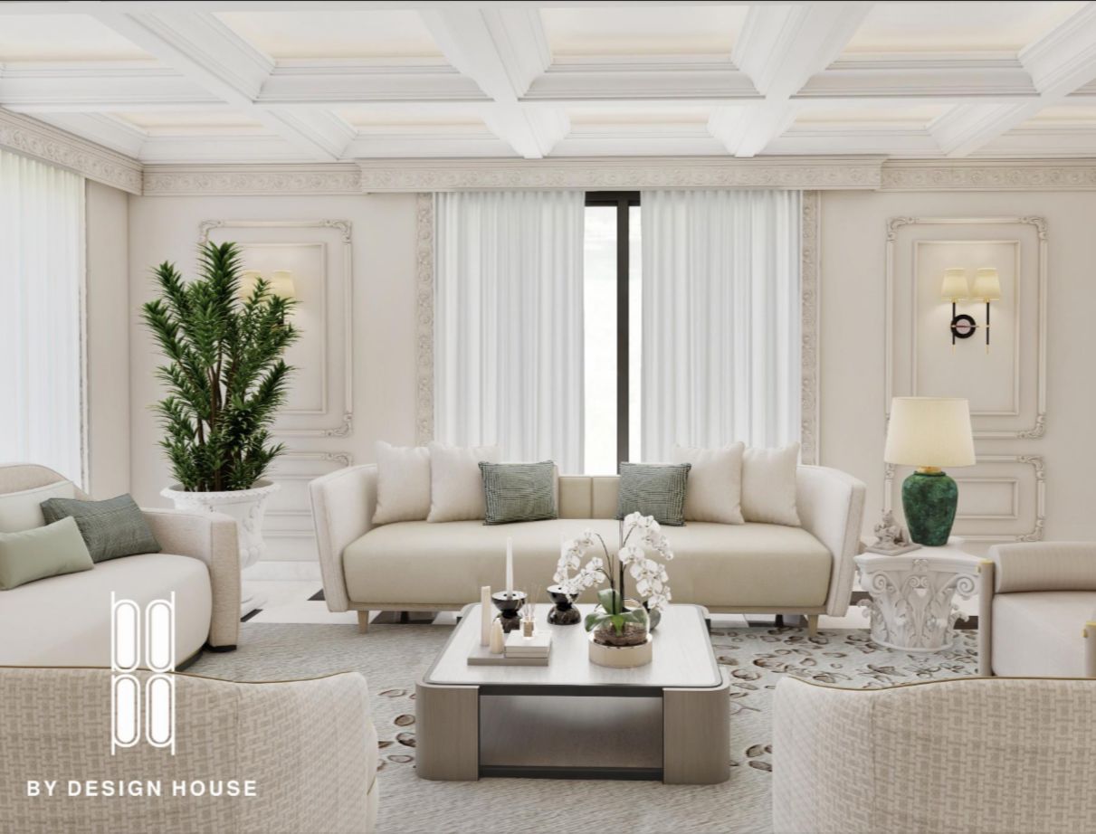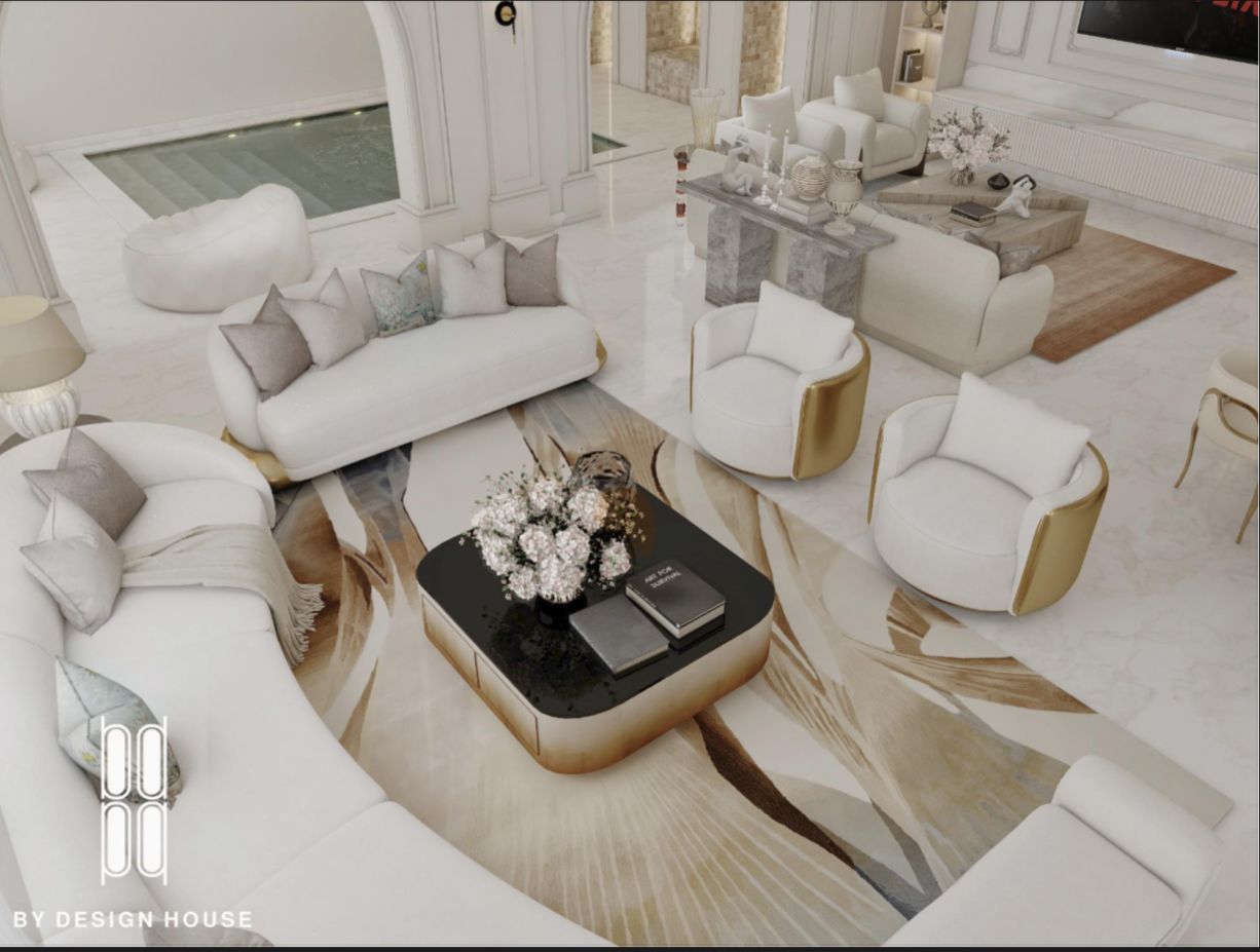 A timeless classic villa that blends elegance and refined details, giving the entrance a distinguished presence. The design features Roman-inspired touches with ornate fence details and intricate architectural elements, where white and gold harmoniously merge to reflect exceptional sophistication. Every corner of this home tells a story of craftsmanship and creativity, bringing together classical character with luxury in a truly distinguished architectural masterpiece.