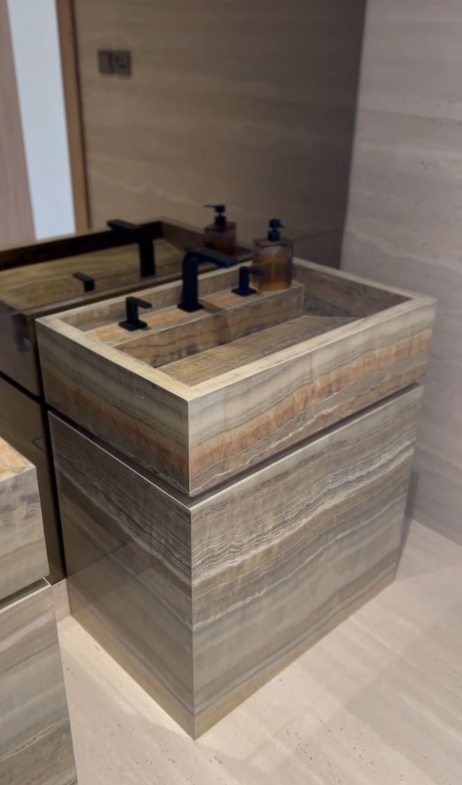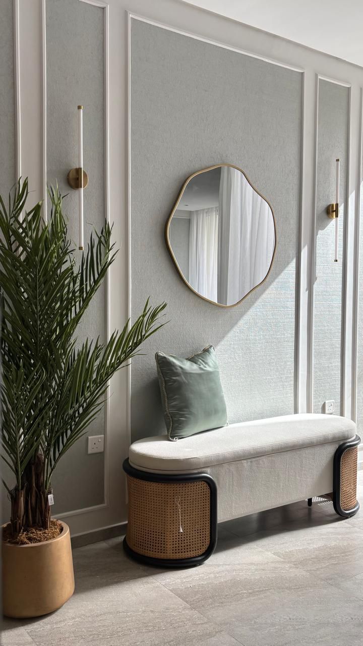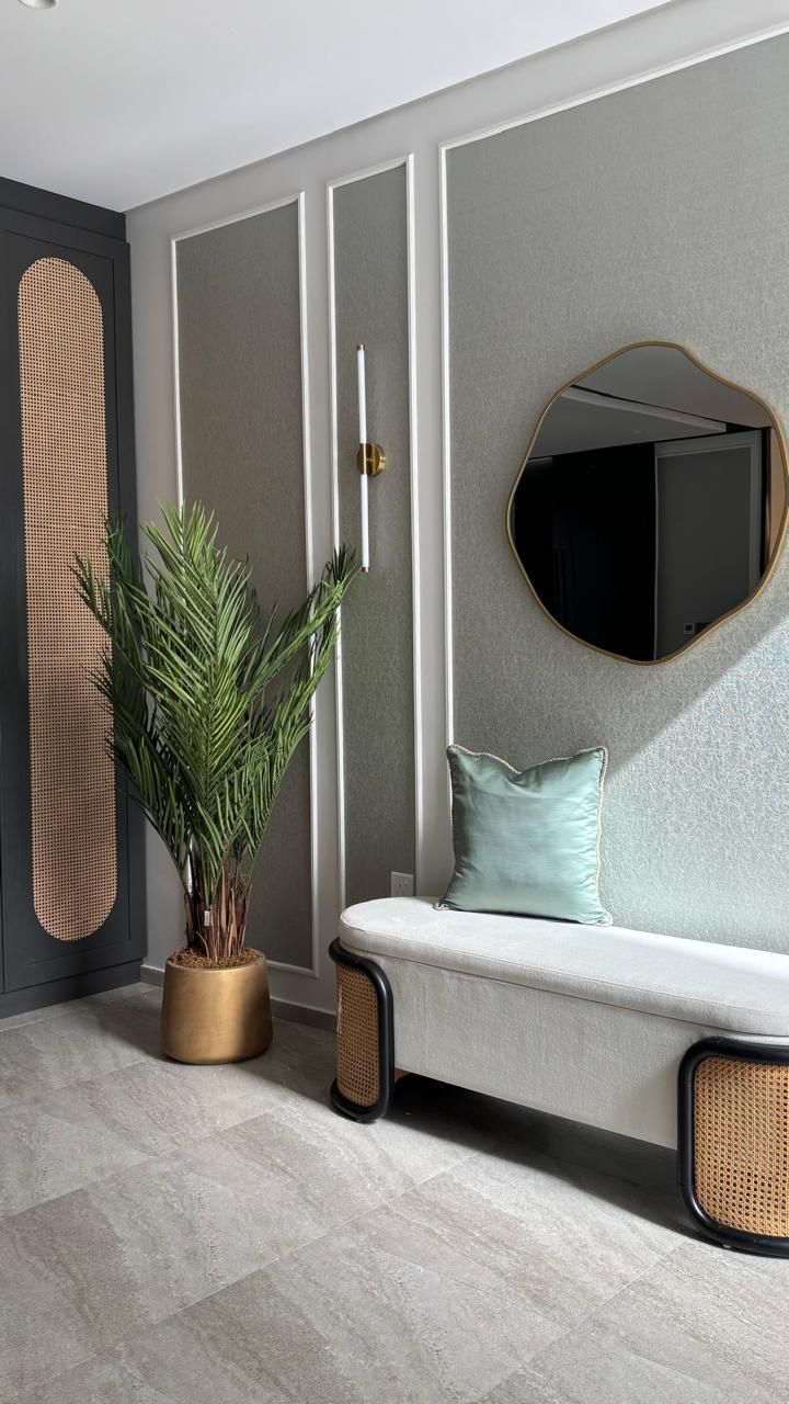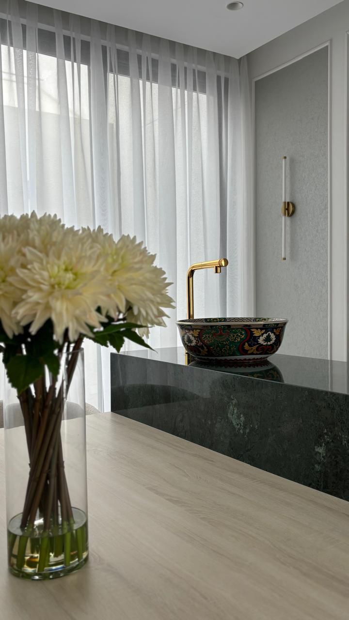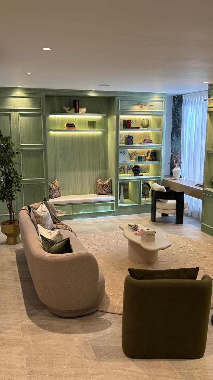 A modern home with a serene and luxurious character, blending natural materials and soothing colors to create an elegant and warm space.